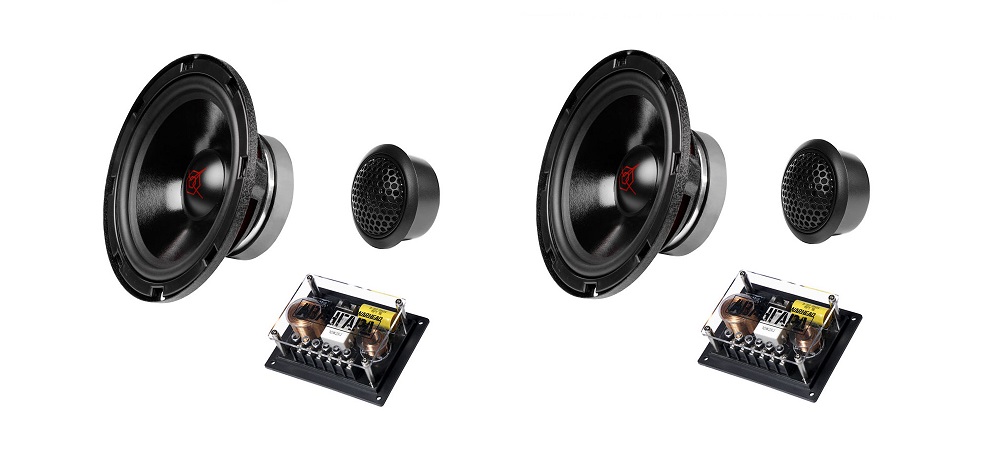 Это классическая компонентка с хорошим кроссовером. Мидвуферы 6,5 дюймов сделаны для стандартных дверей. Корзина штампованная с антирезонансной краской и ребрами жесткости. Диффузор целлюлозный с тканевой основой. Звуковая катушка 30 мм. Контактные площадки разноразмерные, чтобы не перепутать провода. В комплекте поставляется межблочный кабель 18 AWG для соединения с кроссовером, пластиковое монтажное кольцо и гриль решетка.