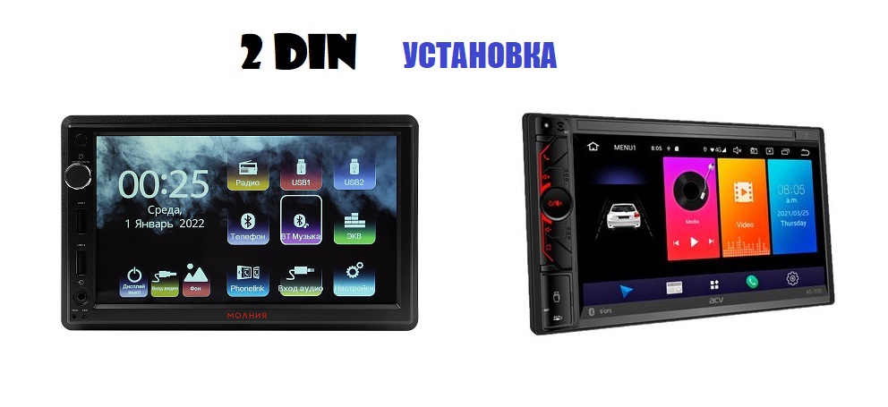 - Автомагнитола 2 дин. Выберите которая вам подходит. Существуют разные типы и модели, включая классические и китайские модели, а также модели с системой Android.